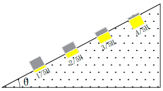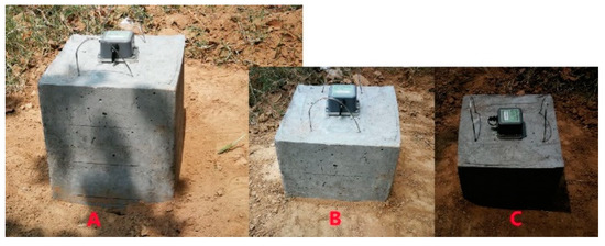 - Test modelIn the experiment, cubes of different sizes and qualities were used to simulate perilous rocks. The dimensions of models A, B, and C were 0.3 m × 0.3 m × 0.4 m, 0.3 m × 0.3 m × 0.3 m, and 0.3 m × 0.3 m × 0.2 m, respectively, and the masses were 84.3 kg, 63.2 kg, and 42.5 kg, respectively. Figure 5 depicts the experiment’s perilous rock model.