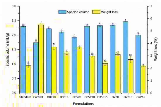 | Cake Volume | 2.43 ± 0.78 a | 4.11 ± 0.27 b | 6.73 ± 0.86 c | 7.38 ± 0.29 c | 6.83 ± 0.55 c |
