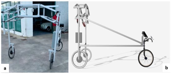 While the right-hand side pillar houses only the wheel motor, the left-hand structure also consists of the “longitudinal rocker”, which ends with the steering wheel and performs the function of directing the device’s gait according to user needs (Figure 1b).
