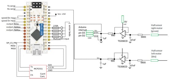 The electronic control system is based on an Arduino Nano microcontroller board and MCP2551 Can Bus module (Figure 8).