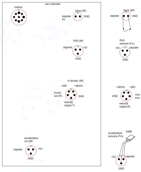 Figure 10 shows the entire system power connection scheme, showing, in addition to the main components connected, the power cable sections and the distribution of the battery voltage system (50 V).
