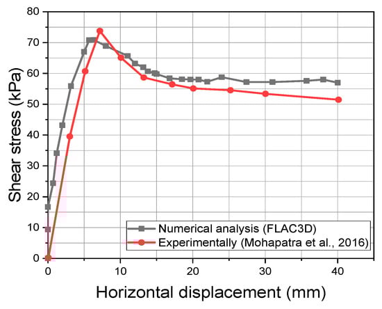 Shear stress- horizontal displacement curve to validate the numerical model [].