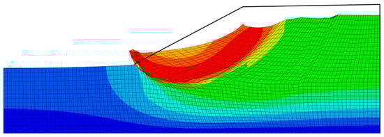 3.2. Expanding the Model—Stability of a Clayey Sand Embankment over a Clayey Soil