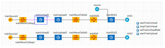 For verification, the solution results of the DRLDA algorithm were entered into Anylogic. In the multi-train train control model, the relationship between train traction energy consumption and passenger waiting time is mainly studied by changing the arrival interval of the train. The TrainSource module in Anylogic sets the train arrival interval, which can be adjusted in minutes or seconds. According to the solution results, the train arrival interval is adjusted by running the simulation.