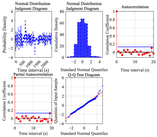 Step 2: The stationarity, as well as the value of both the autocorrelation function and the partial autocorrelation function, are calculated. This assumes that the covariances of two random variables are defined as xt and xt−k, separately, in b(w) with k period intervals. The autocovariance function (defined as covk), with the lag of k period, is calculated by Equation (7).