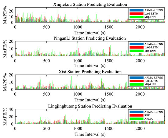 Step 6: Aiming at the linear part of the passenger flow time series, the ARMA model is used for passenger flow prediction. The prediction results are defined as p(t), and the nonlinear prediction error (defined as e(t)) is calculated as follows:
