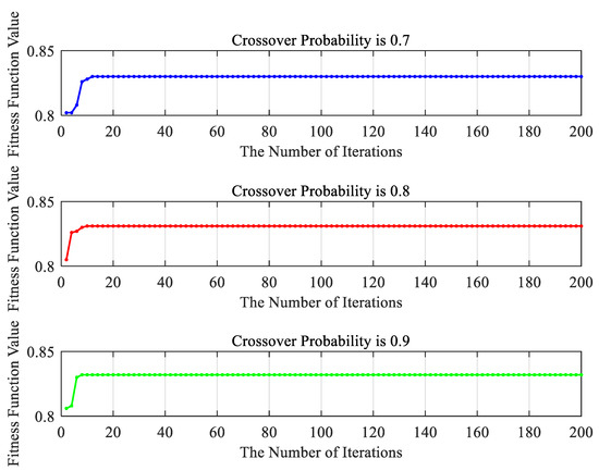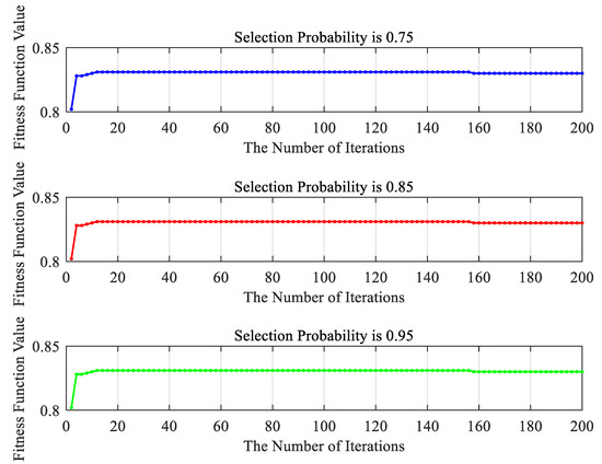 Figure 21 demonstrates that the proposed algorithm converges to a relatively satisfactory solution after more than 100 generations of computation. The time to obtain the optimal solution is about 371 s. As seen in Figure 22, the multi-train operating time optimization diagram, drawn according to the optimization results obtained by the algorithm, can better reflect the variation pattern of passenger flow with time, and the train operating interval changes dynamically with the passenger flow demand. During the morning peak hours of 7:00–9:00 a.m., the operating lines are more closely distributed, which can maximize passenger waiting time, rationalizing train departures and reducing operation costs.