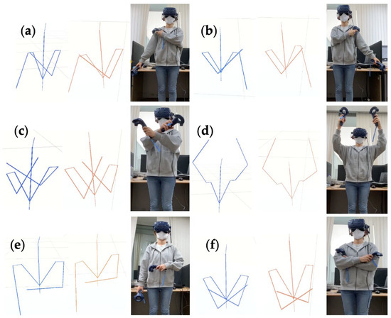 Figure 7f. The red lines are IK results, and the blue lines are our results from the users in the physical world.