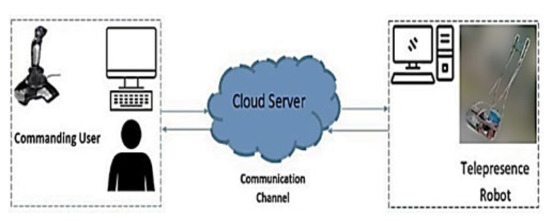 A telepresence robot empowers a distant commanding user to experience real-time presence in remote locations [1]. Cameras are mounted on a robot to recognize the remote environment. A telepresence robot is similar to a mobile robotic system that enables remote users to experience physical mobility. Telemedicine, tele-doctor, telesurgery, and telerehabilitation can save time and money in various tasks. The framework for controlling a telepresence robot combines two-way communication, control signals, and video data, as shown in Figure 1. The telepresence robot operates effectively through signals received from the teleoperator. However, in the event of communication delays, the behavior of the telepresence robot becomes erratic and unpredictable in unfamiliar remote healthcare environments, potentially resulting in collisions and causing harm to individuals. During the period of delayed communication, it may be advantageous to implement an autonomous strategy that effectively assists the telepresence robot. This strategy would involve learning from the teleoperator’s operating behavior and adapting to maneuver efficiently in the remote environment. Simultaneous localization and mapping (SLAM) were one of the compelling algorithms used in mobile robot navigation. The SLAM algorithm uses the input data from different sensors, such as the camera, Lidar, and other sensors, to reconstruct an offline map to understand the surrounding unknown environment [2]. A generalized algorithm flow of a telepresence robot is shown in Figure 2.
