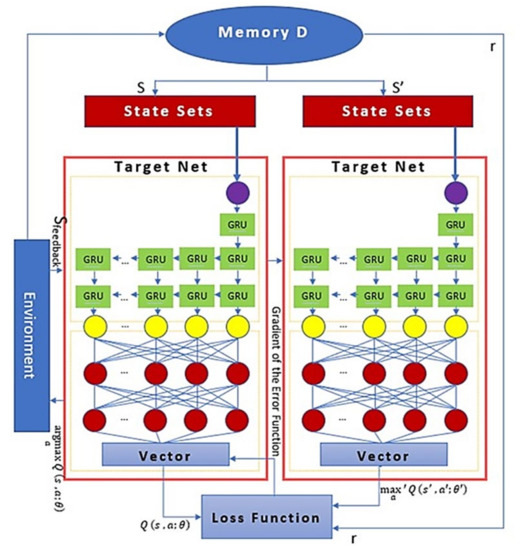 - Wang, Z.; Schaul, T.; Hessel, M.; van Hasselt, H.; Lanctot, M.; de Freitas, N. Dueling Network Architectures for Deep Reinforcement Learning. arXiv 2015, arXiv:1511.06581. [Google Scholar]