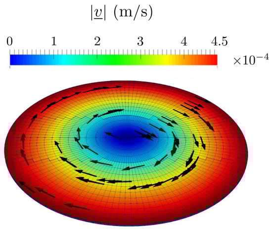 Consider that the gap between the plates is H and the top plate rotates with a constant angular velocity . This flow can be considered an axisymmetric torsional flow because only the azimuthal velocity component is nonzero . Thus, for this geometry, the velocity field satisfying Equations (1) and (2a)–(2c) is given by,