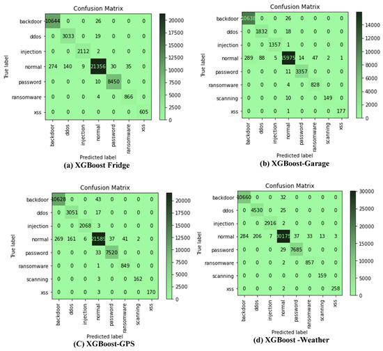 Greater tree diversity results from randomization in tree growth, which also lowers correlation, i.e., increasing the independence of the decision trees. However, because each classifier in an ensemble technique must be trained, it can be computationally expensive. If there is a huge dataset involved, this cost may increase significantly. As a result, we concentrate on the widely used ensemble of ML models in the literature, particularly XGBoost, due to its efficiency and scalability. There are many different traffic aspects in the IoTs’ noisy collected network traffic. Building models for ML-based models takes more time, and because IoT network traffic contains a multitude of features, they have an impact on IDS functionality and performance [5]. Feature selection is required to effectively develop cost-efficient and time-safe models for intrusion detection in IoT [6,7]. The study used criteria, including accuracy, recall, precision, F1-score, and confusion matrix, to evaluate how well the models performed.
