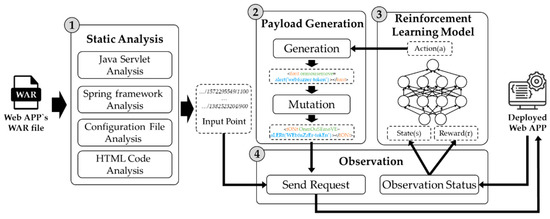 - Lee, S.; Wi, S.; Son, S. Link: Black-Box Detection of Cross-Site Scripting Vulnerabilities Using Reinforcement Learning. In Proceedings of the ACM Web Conference 2022, Lyon, France, 25–29 April 2022; pp. 743–754. [Google Scholar]