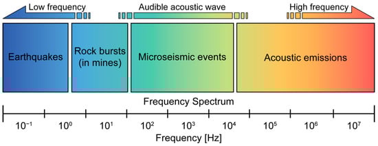 The last decades have seen a significantly increasing scientific interest in studying the thermomechanical effects on jointed rock masses caused by near-surface temperature fluctuations. The in situ monitoring and quantification of thermally induced damaging processes on jointed rock masses constitutes a frontier nowadays in the field of landslide risk mitigation of natural and anthropized rock slopes. The analysis of thermomechanical effects on jointed rock masses has been widely approached through comparative analyses (statistical and observational-based approaches) of temperature and stress–strain long-term monitoring timeseries. Several studies established a strong correlation between near-surface temperature fluctuations and rock mass deformations [1,2,3,4,5,6,7], demonstrating the existence of inelastic trends even in the absence of transient and violent phenomena such as heavy rainfalls, strong winds, or local seismicity, which are frequently considered to be the primary triggering factors of plastic strain. More recently, passive seismic monitoring techniques have been widely exploited to identify and study thermally driven deformations in rock masses. Ambient seismic noise, microseismic activity, and acoustic emission monitoring techniques showed the greatest potential in providing new insights into rock mass fracturing processes. These techniques proved to be useful in highlighting how daily and annual oscillations of near-surface temperatures can cause evident changes in the stability of jointed rock masses, ultimately impacting the evolution in time of already recognized slope instabilities on various dimensional scales [8,9,10,11,12,13,14,15,16,17]. The exploitation of high-sensitivity seismic sensors for studying rock mass instabilities has well-constrained the existence of cause-and-effect relationships between growing instability conditions and microseismic activity [8,15,18]. Furthermore, they have shown great potential in providing precursory patterns of failure events [19,20]. In the framework of structural health monitoring of natural and anthropic structures, microseismic (MS) signal analysis nowadays represents one of the most widespread diagnostic tools in several fields of application [12,17,21,22,23]. MS events are low-energy seismic signals genetically related to the occurrence of plastic deformations within a medium. It is well known that when internal relative slips or the propagation of fractures occur due to the reaching of a strain threshold, the energy stored in a medium is sharply released in the form of elastic waves, leading to infrasonic, sonic, or MS signals [24]. MS monitoring mainly focuses on analyzing signals characterized by a wide range of frequency contents, spanning from 101 to 103 Hz, thus ranking between the traditional earthquake and seismological studies and the acoustic emission domain (Figure 1) [25]. Depending on the characteristics of the site under investigation, MS sensors can be arranged in different array configurations (e.g., varying their location, distance, and density) to surround the monitoring target properly [26].