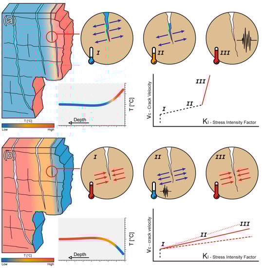 Thermally induced stresses are in fact able to drive differential strain variations, especially in the outermost layers of rock masses, where their amplitude is highest, resulting in contraction and expansion cycles of fractures and microfractures that can eventually lead to their genesis or propagation [19,44,62].