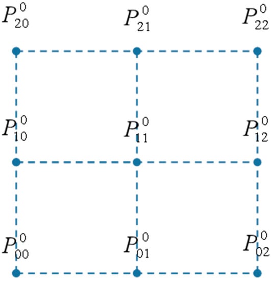 For the biquadratic Bezier surface with a dot matrix, set the data points collected in advance and the control points of the corresponding Bezier surface as follows: