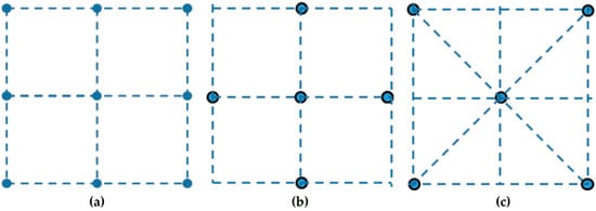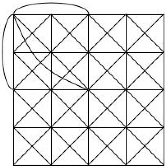 In the classical particle spring model, the bending spring makes the influence range of a single particle larger by connecting the spaced particles. It is precisely because of the increase in this influence range that the edge of the deformation region is smooth []. However, due to the structure of the bending spring, this ability is relatively more concentrated in the vertical and horizontal directions. Compared with uniform elastic physics, because it does not have anisotropy, the demand for the control ability in different directions is not high. However, for special objects, such as soft tissue surfaces, anisotropy as an important characteristic requires stronger control ability. Inspired by a bending spring, a spring can be added in the diagonal direction so that the model can more accurately represent the anisotropy in more directions.
