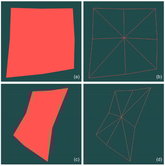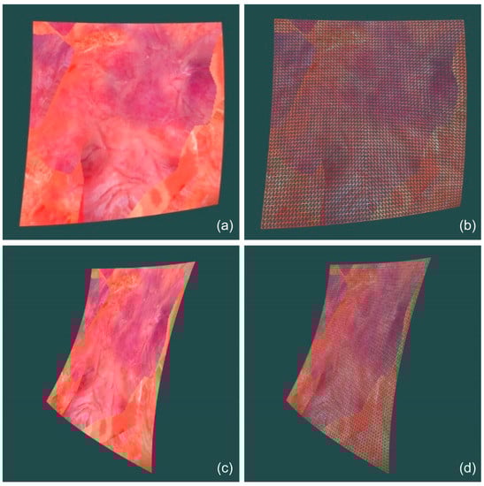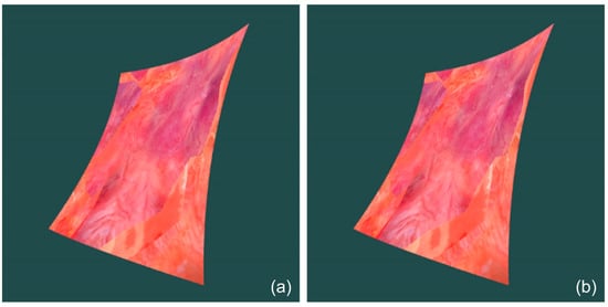 Considering that the spring mesh in the mass–spring model is only distributed on the surface of the model, the control ability of the mass–spring model to the model object is mostly concentrated on the surface of the model, which leads to the inflexibility of the mass–spring model in fitting the changes in the direction perpendicular to the surface. The reason for this is that the mass–spring model itself does not have variables that describe the characteristics in the vertical direction, this problem was significantly improved with the appearance of virtual body springs [].