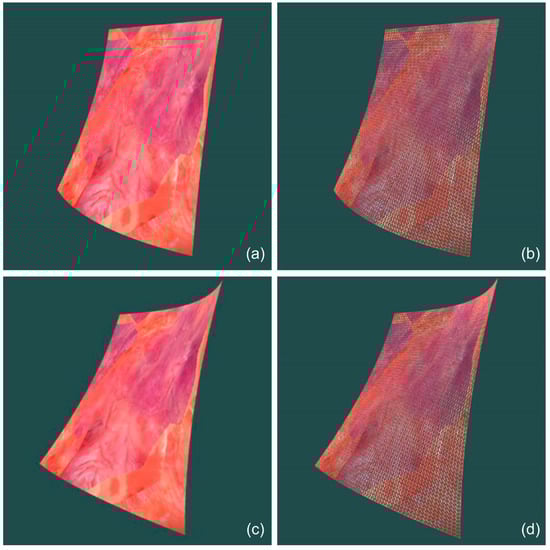 In the research of biological tissue modeling, modeling can be simply divided into two categories according to whether force calculation is included, namely, physical modeling and geometric modeling []. Geometric modeling is mainly used to describe and express the shape of an object. In the modeling process, the influence of force is not considered, and the accuracy of the shape is emphasized. Meanwhile, physical modeling is based on physical principles, and the process of model change is determined through internal force calculations. Therefore, the structure is more complex.