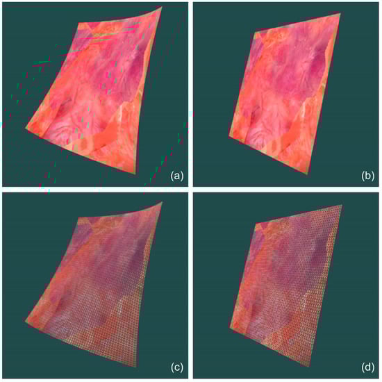 Compared with the original surface, as shown in Figure 11a,c, combined with the experimental results of the superimposed base surface Figure 11b,d, it can be found that the superimposed base surface does introduce new information into the original surface, and does not modify the data related to the original surface in this process, which shows that it is feasible to make the model retain the inherent properties of the object through the base surface.