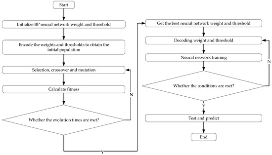 GA-BP neural network algorithm uses a genetic algorithm to obtain the optimal structural parameters of the BP neural network, and then carries out the training of the neural network, and selects the test set for testing. The algorithm flow is shown in Figure 1.