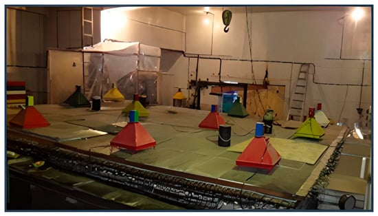 In connection with the reconstruction, a new name was assigned—“Hadron-M complex installation”, which included an ionization-neutron calorimeter with an area of 55 m2 and an absorber thickness of 1244 g/cm2 (out of eight rows of ionization chambers), one row of neutron detectors and two shower systems of scintillation detectors. The effective area of the “Hadron-M” complex installation was about 30,000 m2 [].