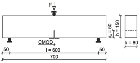 | Three point bending | Notched beam | 80 × 150 × 700 | 18 |