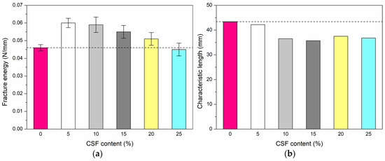 - The characteristic length decreases in the range of 3–18% with the 5–25% addition of CSF, compared to the reference mix. HPC with 15% CSF substitution is the most brittle, which is due to the shortest characteristic length.