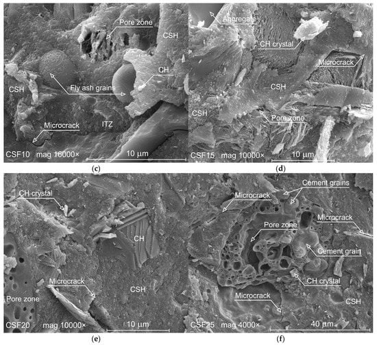 - The reduction of ITZ around the aggregate grains and the formation of higher-strength hydration products results in smaller microcrack widths in all CSF-added HPC.