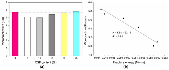 - The microcrack width gradually decreases in the range of 11–2% with increasing CSF content from 5% to 20%, in comparison with the reference HPC. However, the microcrack width increases by 2% for 25% CSF.