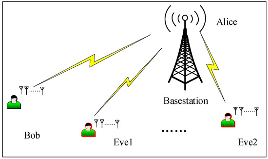 The image signal transmission scenario considered in this paper is shown in Figure 1. All participators, including the transmitter Alice, the legitimate user Bob, and the eavesdropper Eve, were equipped with multiple dual-polarized antennas. The information was broadcast from Alice to Bob, which could then be recovered by the eavesdropper Eve.