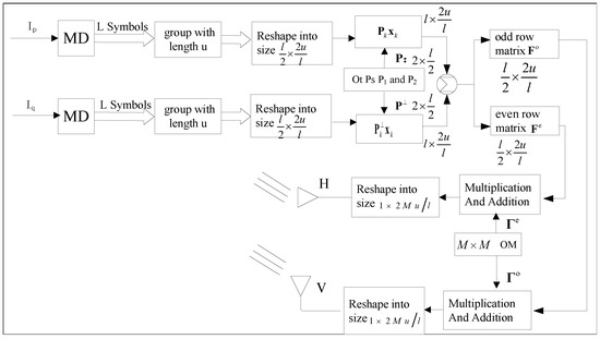 It was found that and were the matrix, which had to be reshaped into vectors and for transmission by two orthogonal polarized antennas, respectively.