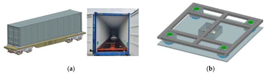 - Jang, S.H.; Jang, G.S.; Lee, H.M.; Kim, C.S. Development of Low-Vibration, Shock-Proof Logistics Technology to Improve Railway Freight Transportation Service; Korea Agency for Infrastructure Technology Advancement: Anyang-si, Republic of Korea, 2020. [Google Scholar]