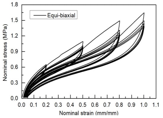 Stress–strain curves of the natural rubber under equi-biaxial tension.