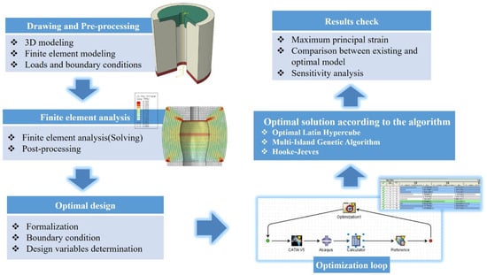 I-SIGHT input commands were stored in the I-SIGHT database as a model parameter file in the model zrf format. During the optimization iteration, the finite element model and parameter file were computed simultaneously. Based on each algorithm, the result of the optimization iteration was stored in the optimized neutral form, and the finite element model was changed. Based on each optimal algorithm, the MPS was reduced iteratively while satisfying the constraints listed in Table 5.