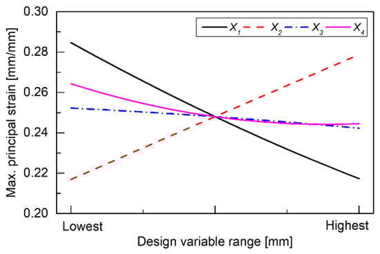 Figure 15 shows a comparison of geometric shapes of the existing drawing and the optimal design section based on the MIGA. The sensitivity analysis results for the design variables of each shape section are in Figure 16. As shown in the figure, the slope of the MPS based on the increase in the length of the design variable was the greatest within the design area; therefore, it was the most sensitive.