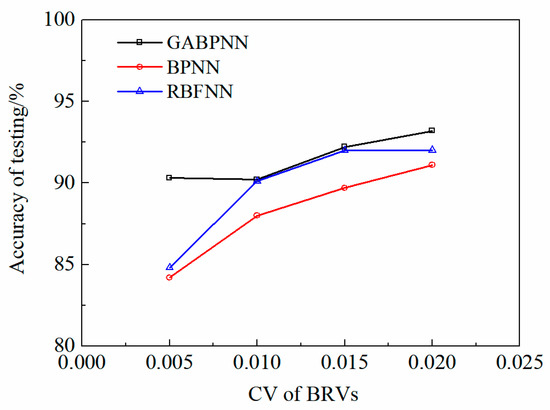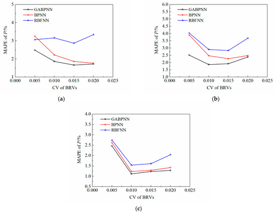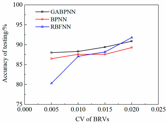 In addition, the structure and corresponding parameters of the BPNN were the same as the corresponding ones of the GABPNN. The neuron numbers of the input layer and output layer of the RBFNN were the same as the corresponding ones of the GABPNN, and the neuron number of the hidden layer of the RBFNN was equal to the sample size q of the training sample set.