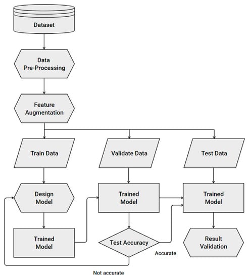 The construction process of the artificial intelligence algorithm consisted of 6 steps: obtaining the dataset, data pre-processing, feature augmentation, model design, training/validation of the model, and results validation. Figure 1 shows a construction diagram of the algorithm.