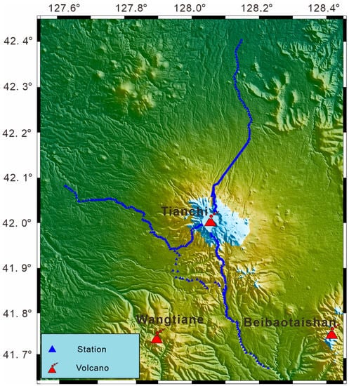 - Li, Z.; Ni, S.; Zhang, B.; Bao, F.; Zhang, S.; Deng, Y.; Yuen, D.A. Shallow magma chamber under the Wudalianchi Volcanic Field unveiled by seismic imaging with dense array. Geophys. Res. Lett. 2016, 43, 4954–4961. [Google Scholar] [CrossRef]