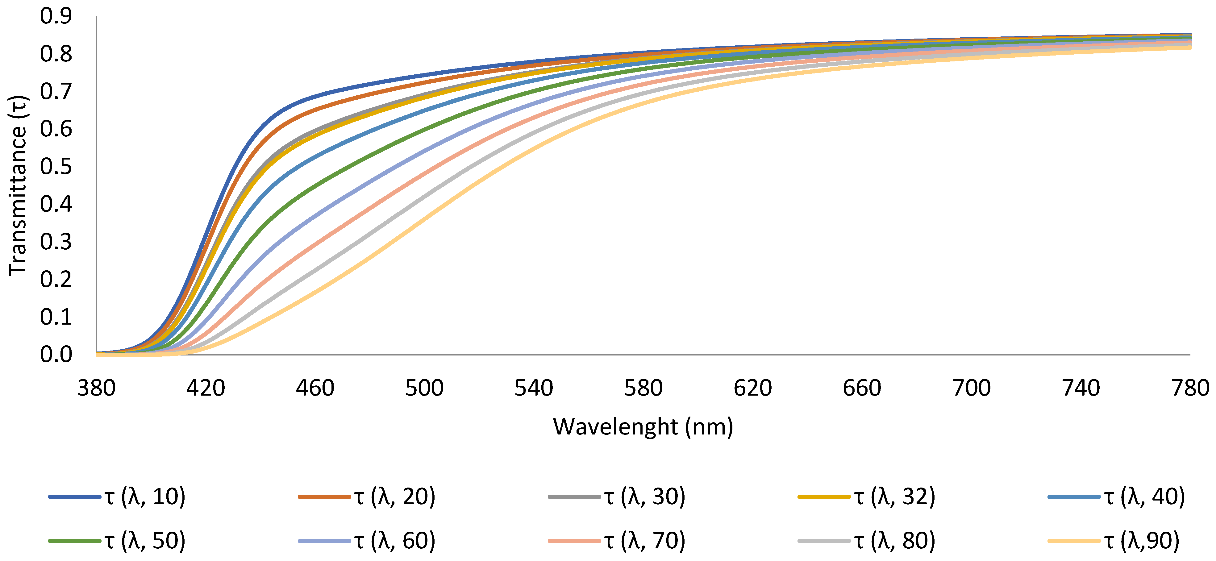 | Standard illuminant D65+Lens_40Years | 4842 | 93 | 76 | 0.3528 | 0.3815 |