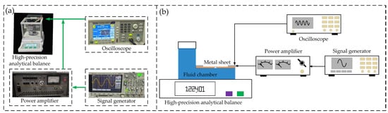 To further verify the influence of electrolytic polishing on atomization amount, the atomization amount measurement scheme was designed as follows: In the experiment, the output of the signal generator was placed in a sinusoidal gear (an oscilloscope was used to capture the sinusoidal signal in the figure) to obtain the AC voltage. A power amplifier was used to amplify the signal as the driver, the atomizer was connected, and the oscilloscope was used to monitor the input signal of the atomizer. The liquid in the experiment was distilled water. Figure 9 depicts the atomization experiment device. Before the experiment, the atomizer with water was first placed on a balance. When the time reached 1 min, the power supply to the atomizer was stopped. At this time, the value reduction displayed in the balance was the atomization amount of the atomizer. The atomization volume of the above eight groups of piezoelectric atomizers with an operating voltage of 45 V and polishing time of 1–7 min was measured.