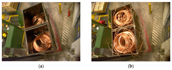 The workstation where the proposed solution has been applied is the Spoolers’ workstation, due to the amount of scrap these machines are producing. More specifically, the Spoolers produce level wound coil (semi-) final products and the scrap generated is collected in containers. A container may be used to collect scrap for a group of Spooler machines. In Figure 3 samples of the bins located close to the Spoolers are depicted.