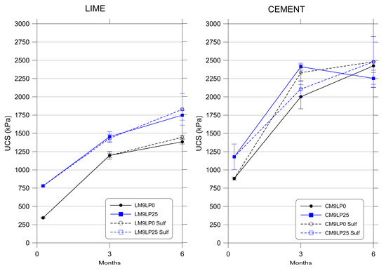 - A clear positive effect was observed on the unconfined compressive strength of the stabilized soil when adding limestone powder as a ternary element together with lime or cement.