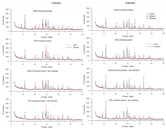 - Limestone powder waste can be used for soil stabilization in a sulfate aggressive medium, as no harmful effect was observed when samples with cement or lime, with or without limestone powder, were made with a sulfate solution of 3000 mg SO42− per liter up to the maximum age studied (6 months).