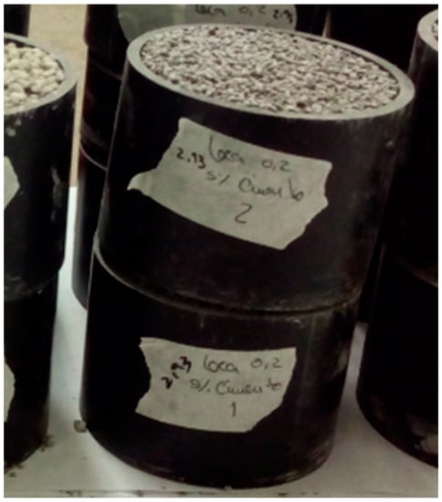 Having in mind the purpose of performing acoustic measurements in an impedance tube, several concrete-based mixtures were prepared by incorporating expanded clay (Figure 3). The cylindrical test specimens had an approximate diameter of 10 cm, and two sets with thicknesses of 4 and 8 cm were manufactured.
