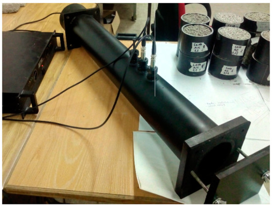 To obtain the sound absorption coefficient under normal incidence conditions, laboratory tests were performed on a circular impedance tube with 100 mm internal diameter (Figure 6). The test methodology is described in ISO 10534-2 [17], which is based on the transfer function between two microphones.