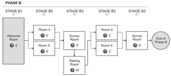 - Stage B2. Room 4 or 5 (3 min in each room). The viewing order was alternated to balance any possible resulting effects.
