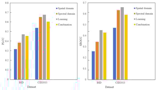 In this section, we selected several representative methods from the above four main groups and analyzed their evaluation performance on the public datasets. MLV [46], BIBLE [35], MGV [46], ARISM [47] and CPBD [49] are selected for the spatial domain-based methods; DCT-QM [60], SC-QI [61], FISH [62], LPC-SI [65] and BISHARP [66] are selected for the spectral domain-based method; BIQI [72], DB-CNN [77], DeepBIQ [78], SPARISH [79], SR [81] and MSFF [87] are selected to represent the learning-based methods; S3 [88], RFSV [91], SVC [92] and SFA [93] are selected as the combination methods. The specific information of the comparison method is described in Table 3. We also introduce six commonly used public datasets and four commonly used indicators in different literature to measure the sharpness methods and to select two indicators to evaluate the image quality evaluation results.
