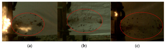 After an EFP penetrates the target, the fragments behind the target scatter in different directions, forming a debris cloud. The shape of the BAD cloud reflects the spatial distribution of the fragment velocity, and the striking area in multi-layered witness plates after the fragment penetrates reflects the spatial distribution of the fragment energy. Figure 4 shows the high-speed photographic images of the BAD clouds for the three EFPs.