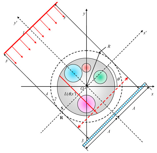Figure 1 shows a diagram of the formation of projections in the X-ray CT in the parallel beam geometry for the TO slice described by the set S⊂ℜ2. Traditionally, fixed XOY and moving X′OY′ Cartesian coordinate systems are used for the convenience of describing the process of projection formation. The finiteness of the set S allows it to be inscribed in a circle R⊂ℜ2 with radius R. The coordinates of a point in the fixed coordinate system (x, y) are related to the coordinates of the same point in the moving coordinate system (x′, y′) by the rotation transformation by the angle θ [14,15]